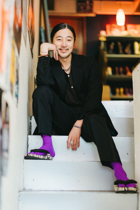 「きっかけは姉の結婚式でバチっと決めたいと思って。今はオーダーの虜。色んなパターンを作りたいです。好きな70〜80年代のレゲエファッションをベースに、上着の着丈を短くしてダブルのライダースジャケットぽい作りにしたり、上着の後ろのスリットを無くしたりしたのもポイント。少し胡散臭さがある金ボタンや、袖のボタンも大きめサイズにしてもらいました。生地もなかなか手に入らない物をチョイスしてくれたり、裏地の宇宙感もナイスでした。CONFIANCEのオーダーじゃないとこんな無茶ぶり聞いてくれないと思います」
